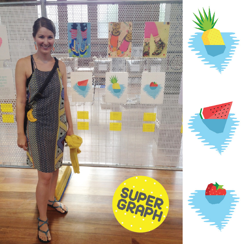 I exhibited and sold my work in the 2014 Supergraph event from Feb 14-16 2014 at the Royal Exhibition Building, Melbourne. I exhibited three limited edition A4 giclee art prints. The Pineapple Float Image was chosen as The Design Kids top picks in the Supergraph Newspaper.