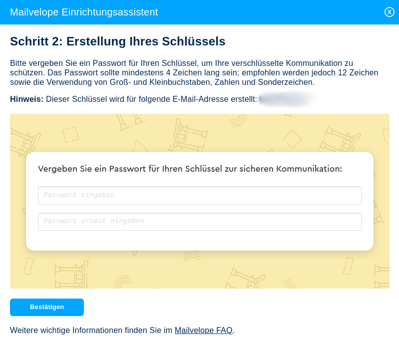 Mailvelope und starten Sie den Vorgang erneut. Der Assistent sollte dann nicht mehr erscheinen und Ihre verschlüsselten Inhalte können direkt bei uns durch Mailvelope entschlüsselt werden.