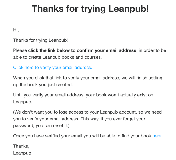 [Leanpub] Thanks for trying Leanpub! Please verify your email address...
