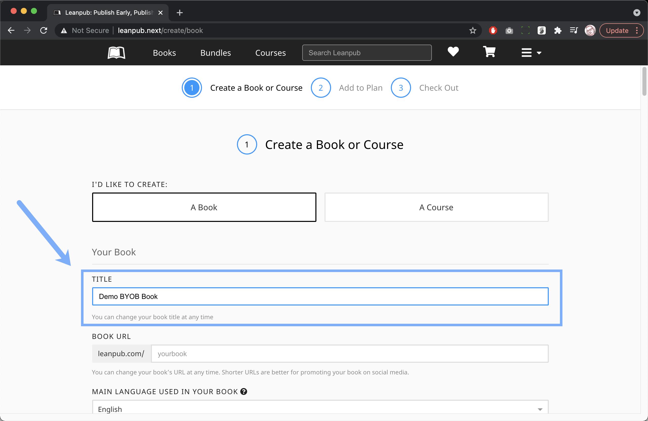 Next, type a title for your book into the "TITLE" box: