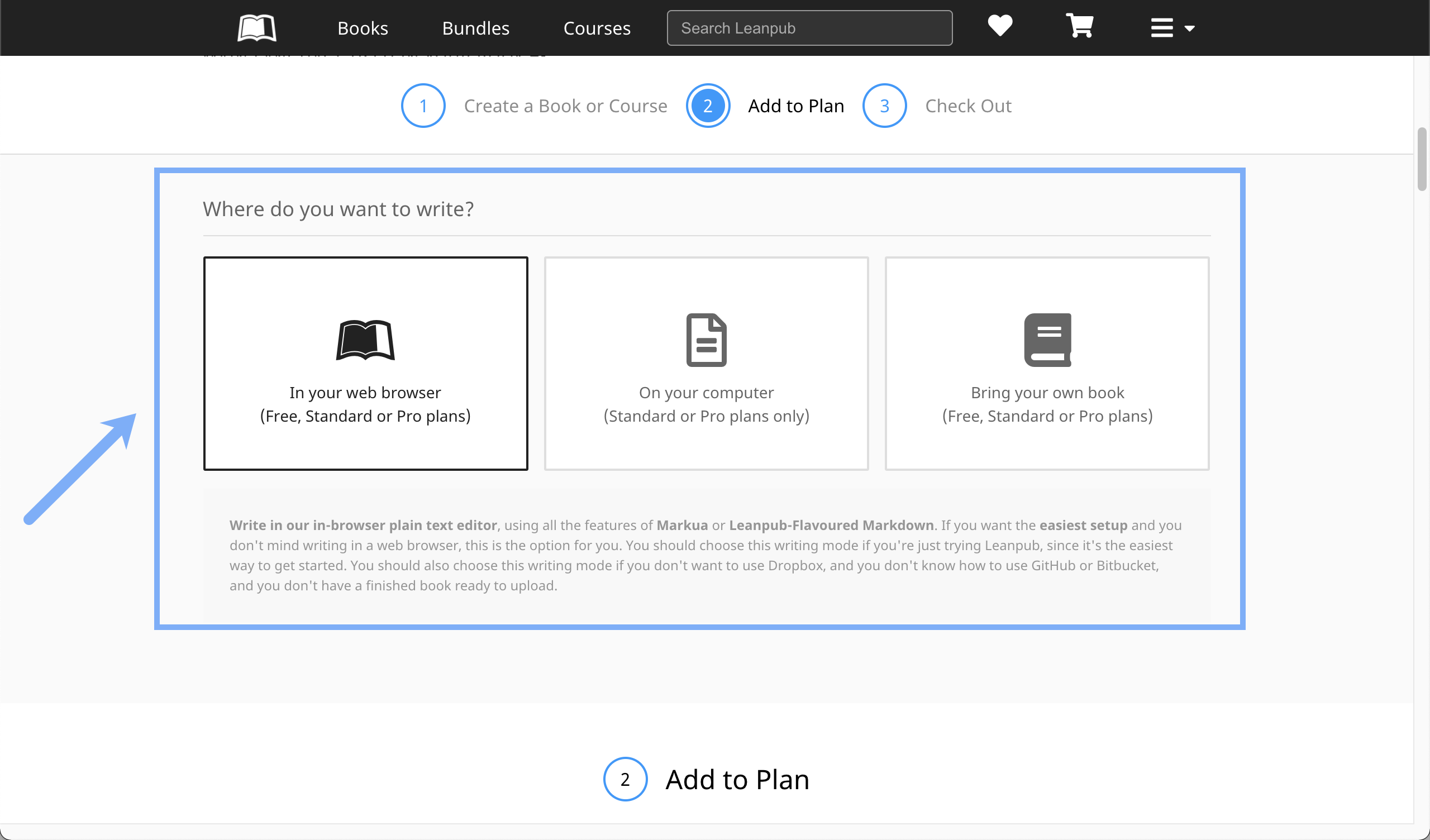 When you scroll down, you will see the subscription plan options. By default, "Standard" will be selected, if you are setting up your first book in Leanpub.