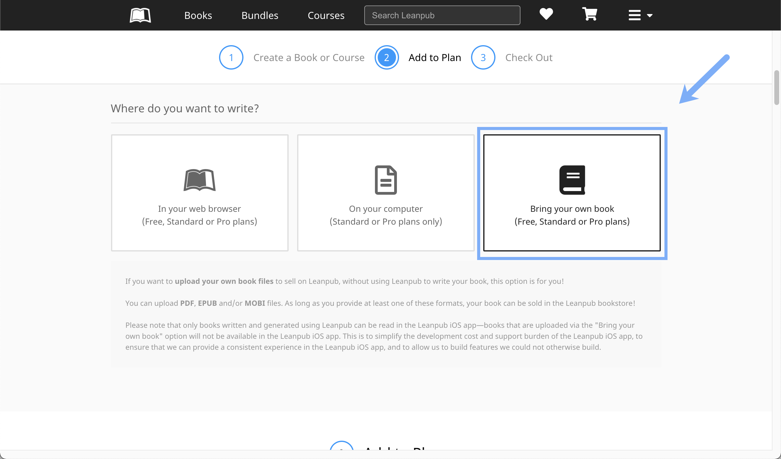 Scroll down until you see the "Upload Your Book Files" section: