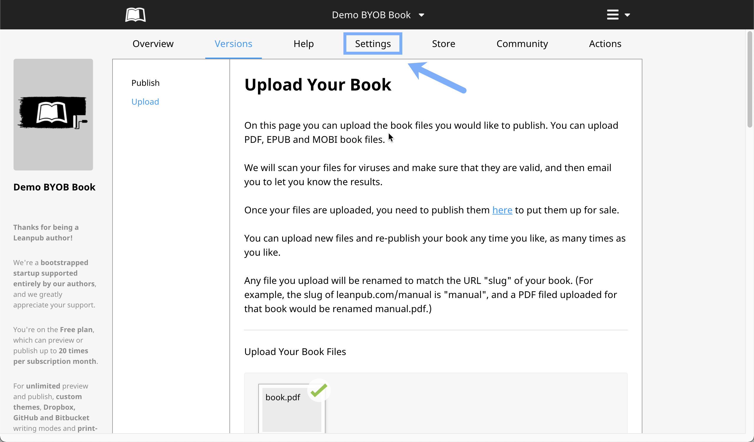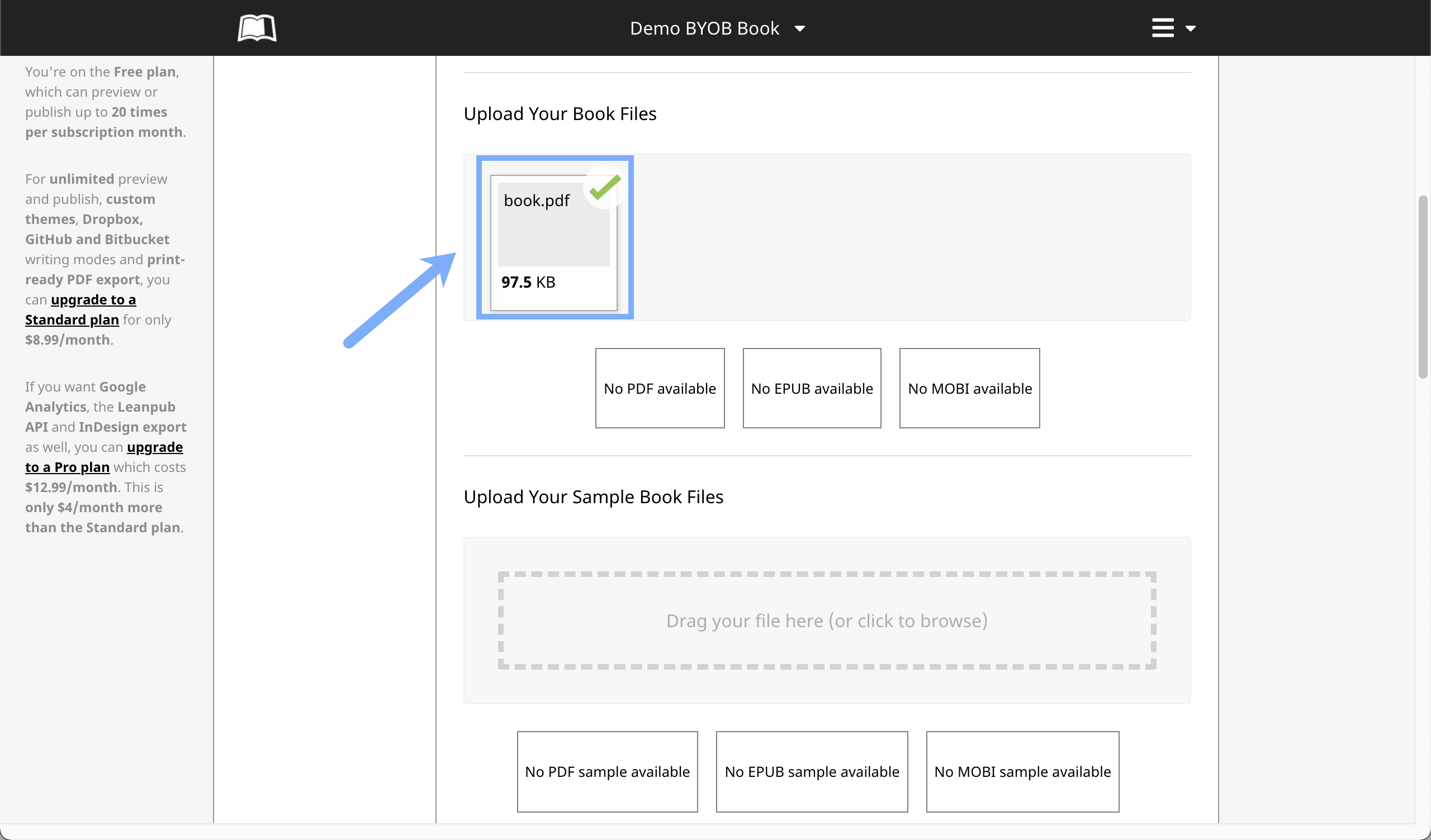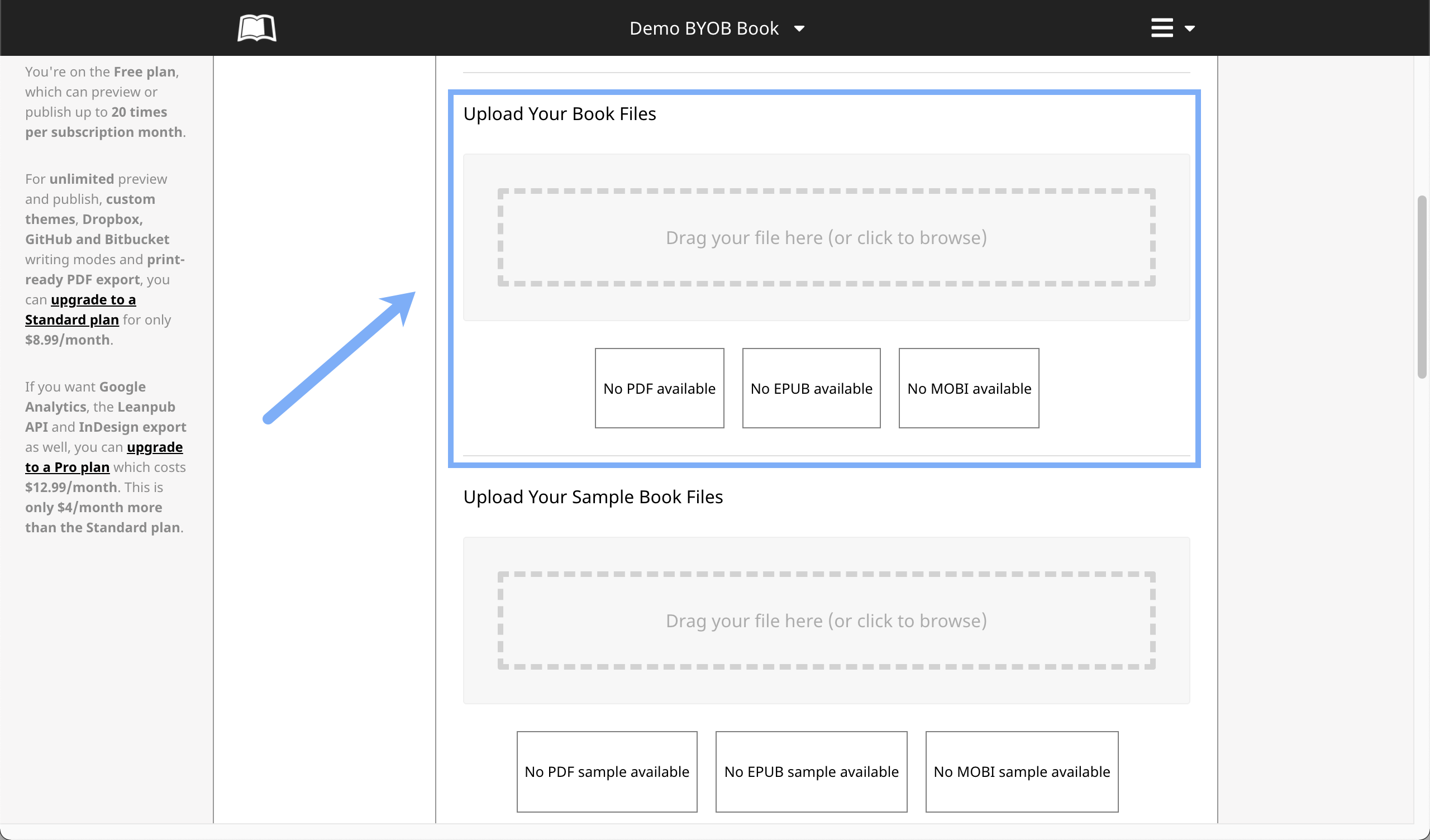 Next, scroll down to the "Upload Your Sample Book Files" section: