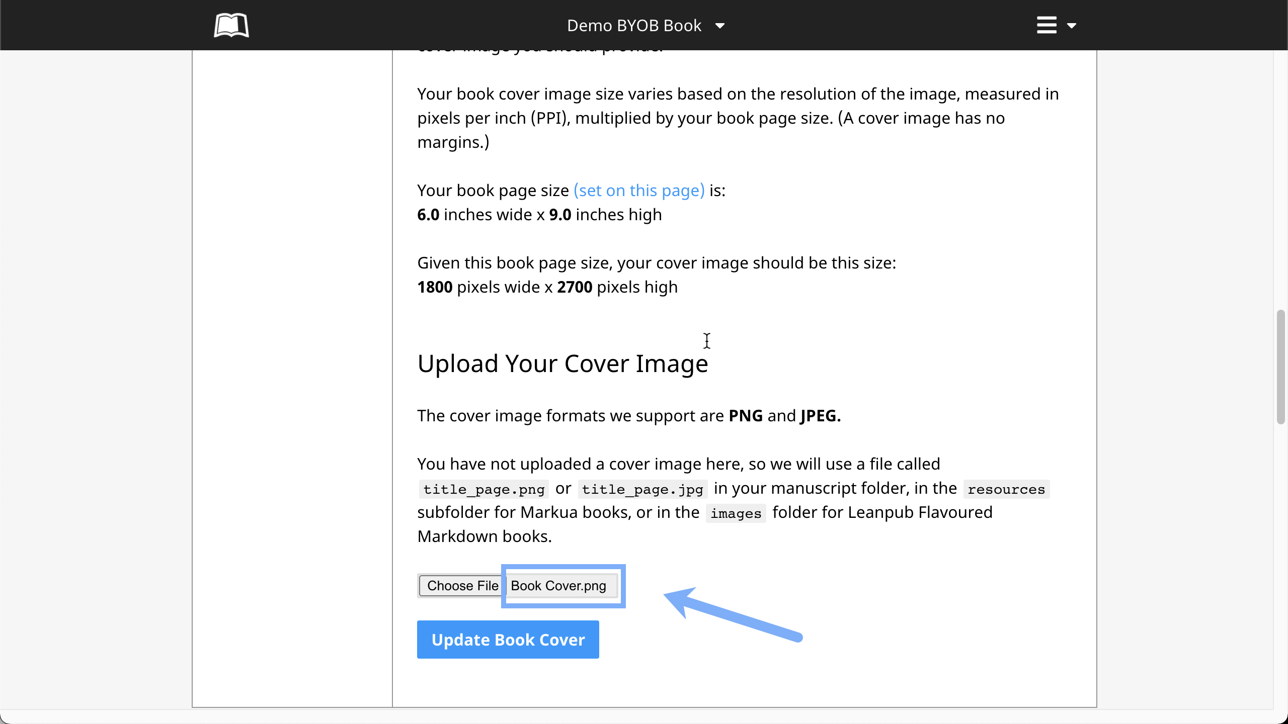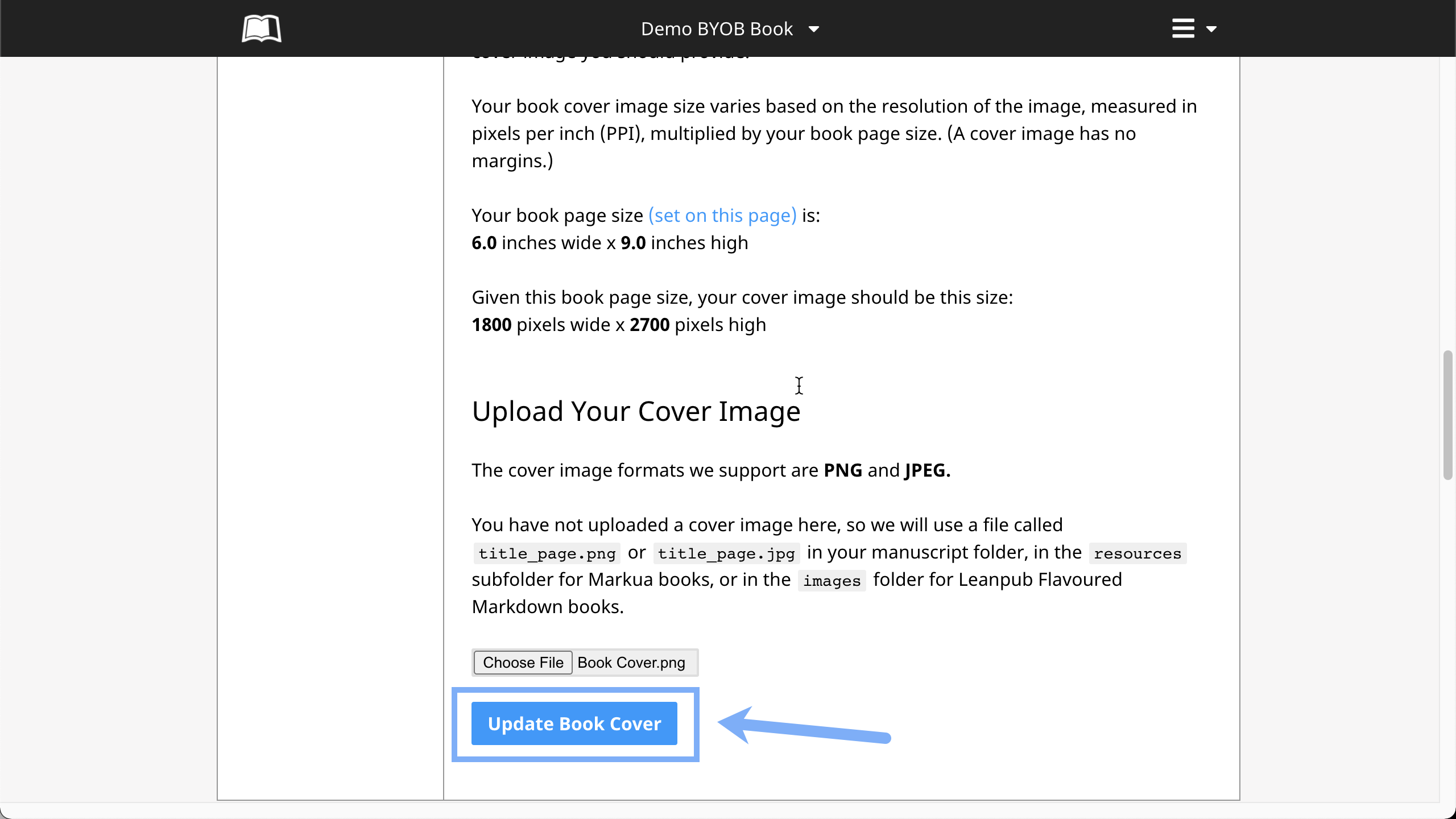 Next, click the blue "Update Book Cover" button: