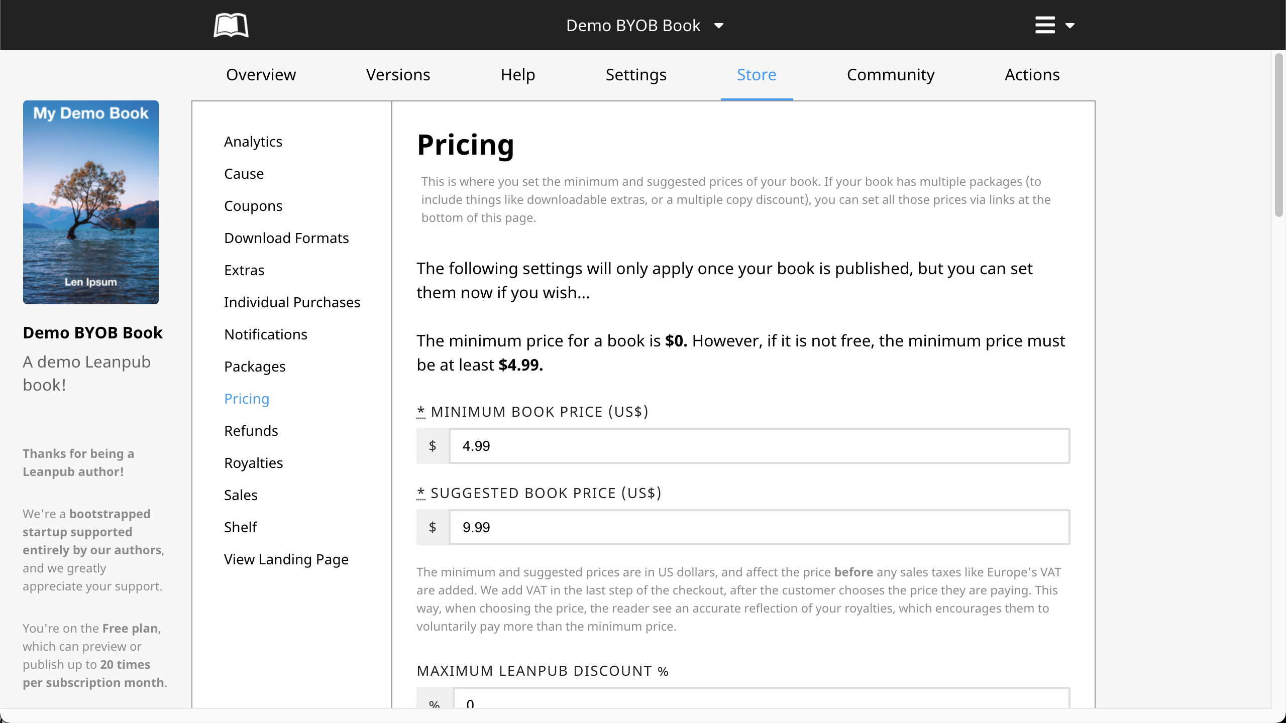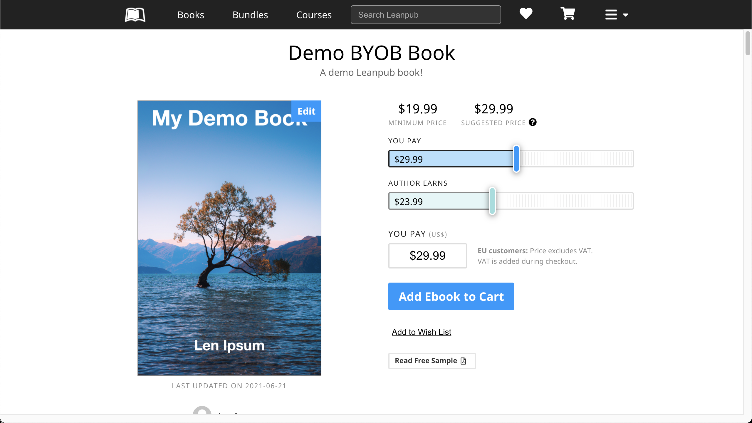 Leanpub uses a "variable pricing" model for selling books, courses and bundles.