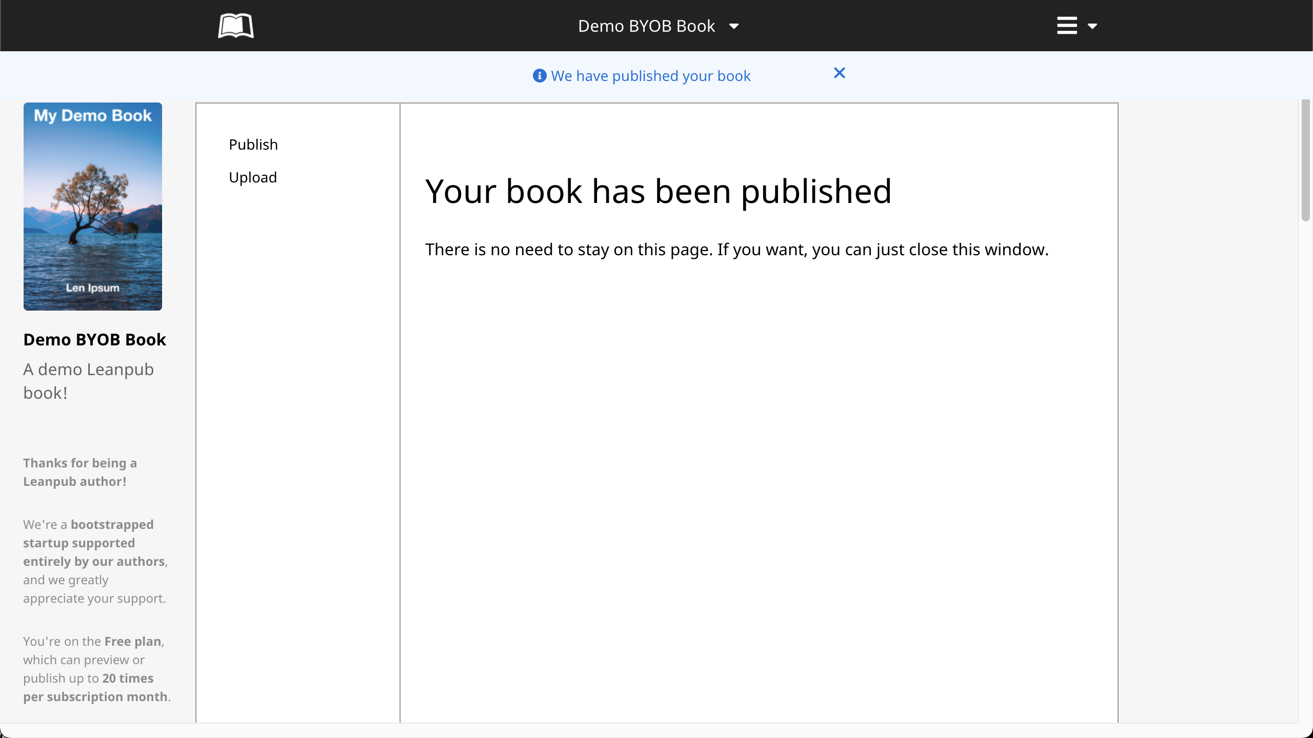 You will then see a message saying "Your book has been published":